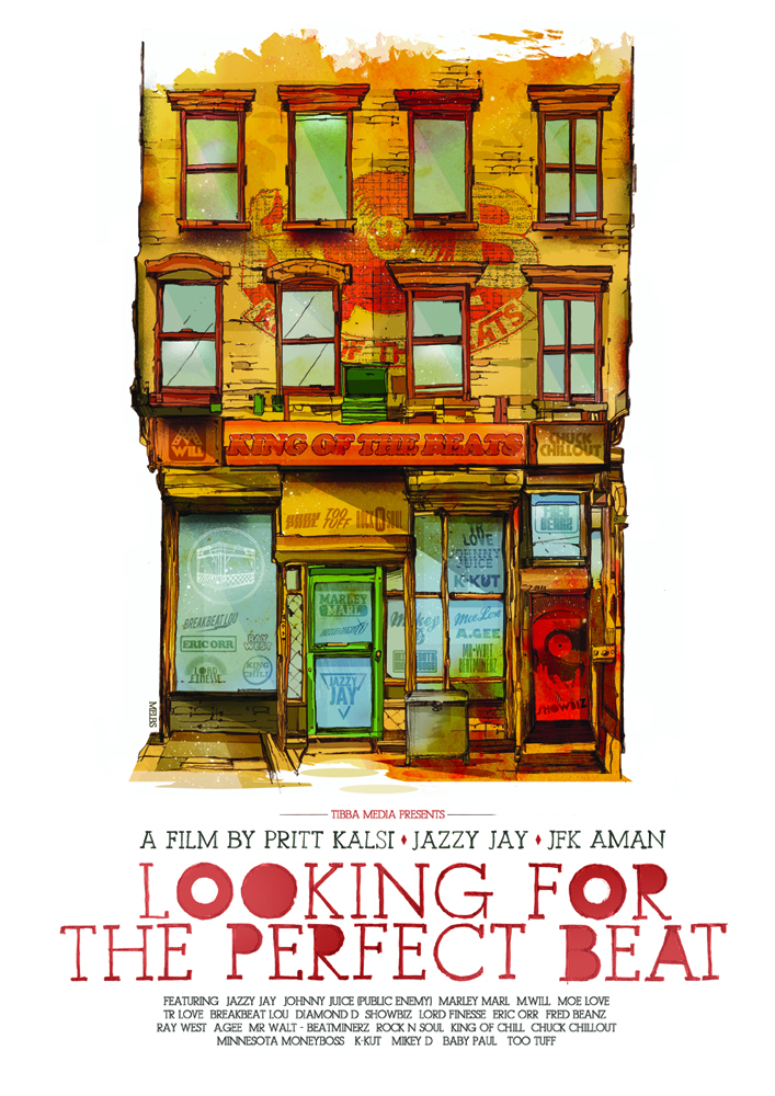 I remember the many phones calls me and Chris had discussing the new look KING OF THE BEATS, It was after I returned from NYC and spoke to Chris detailing my experience out there, he was inspired and came up with this design. Inspired by Bed stuy, Brooklyn home base for me and the film crew, Andy Higgs and Steven Ellington. He looked at the pictures we brought back of shop fronts, signs, streets and buildings, his aim was to capture the spirit of Hip Hop Culture and our time in the states.